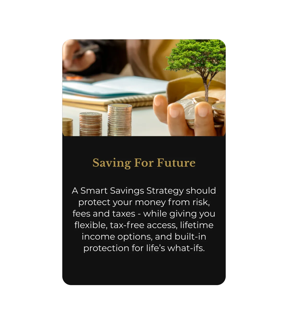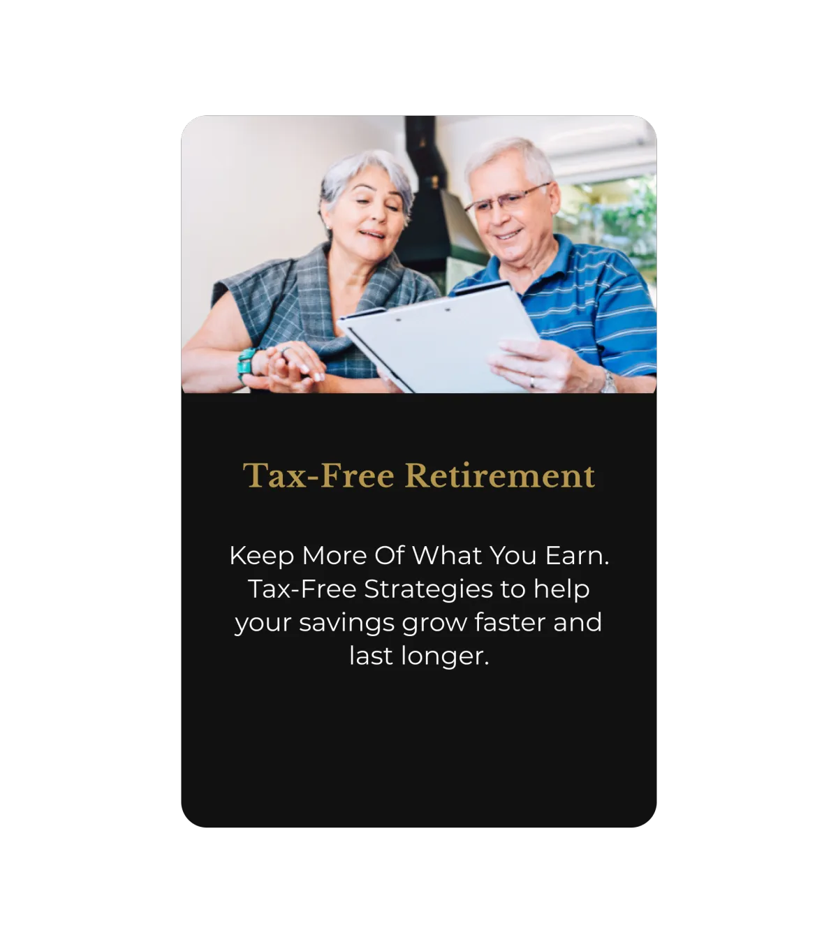 A 401(k) is tax-deferred, not tax-free — which means you'll pay taxes later, potentially at higher rates. You also don't want to gamble your retirement to the volatility of the market. Our strategy helps you diversify your tax exposure, reduce future tax risk, access your money without penalties or age restrictions, and protect your principal.